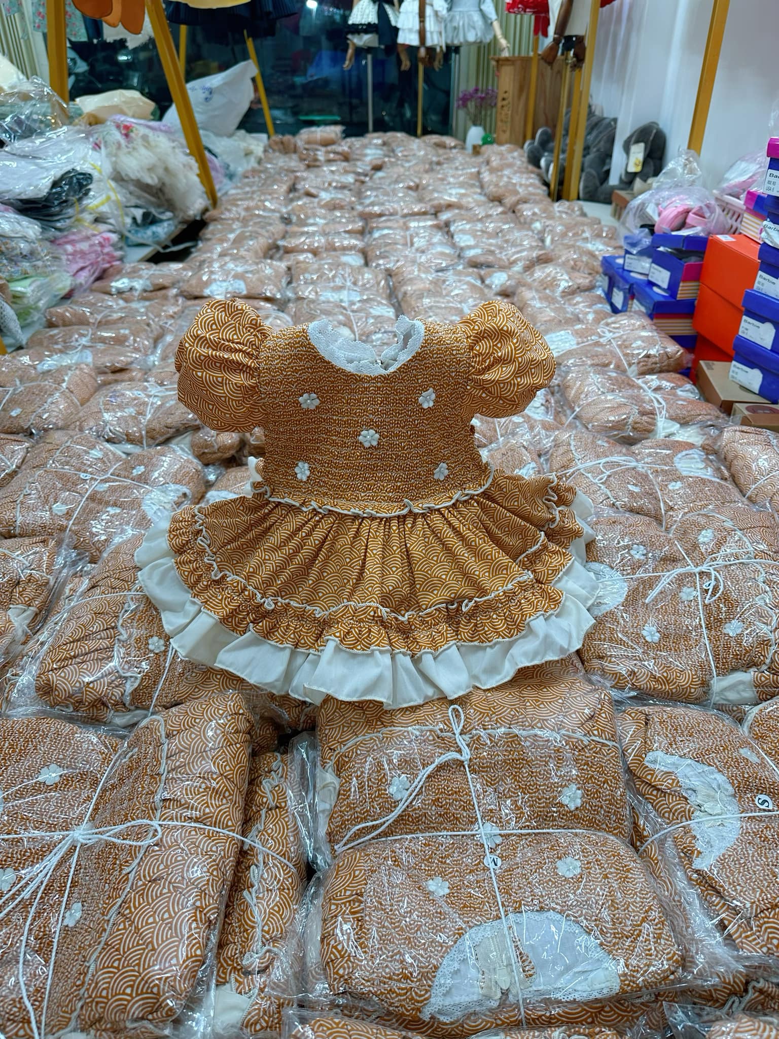 Lưu ý: form váy nhỏ ôm vừa người ạ! Mom nào thích dài và rộng rãi một tý tăng lên 1 size giúp em nha!