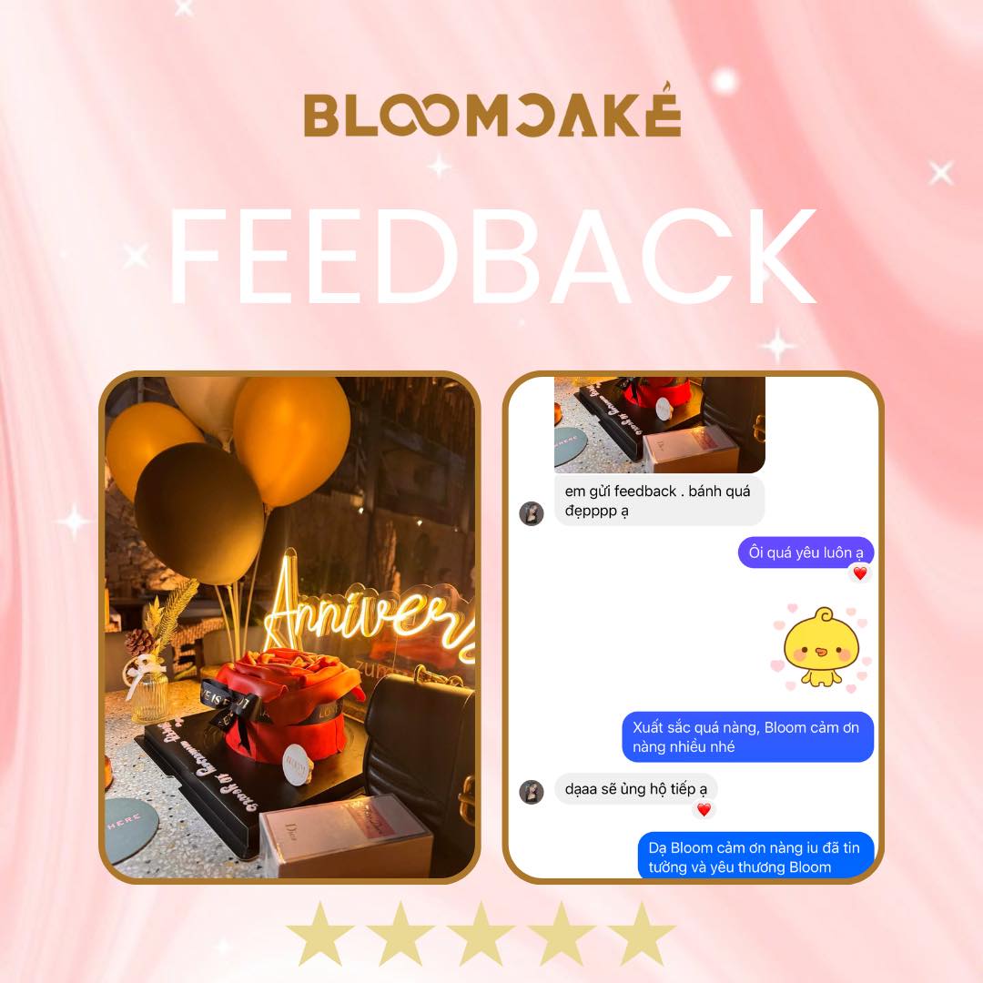 Feedback của khách là nguồn động lực lớn nhất của BLOOM CAKE! ❤️ Cảm ơn vì đã luôn tin tưởng và yêu thương tụi mình nhé