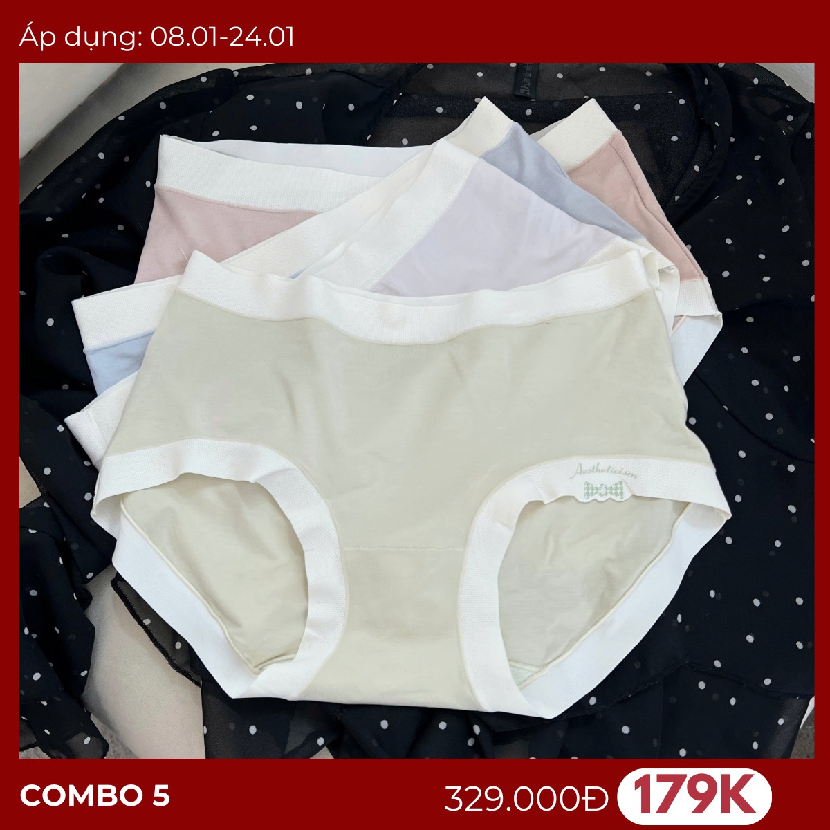 Gợi ý nàng sẵm cotton cho tết này không tốn xiền là mua theo combo 5 😁 Vừa được giảm giá tới 55% vừa được hỗ trợ ship 10k trong thời gian cao điểm này