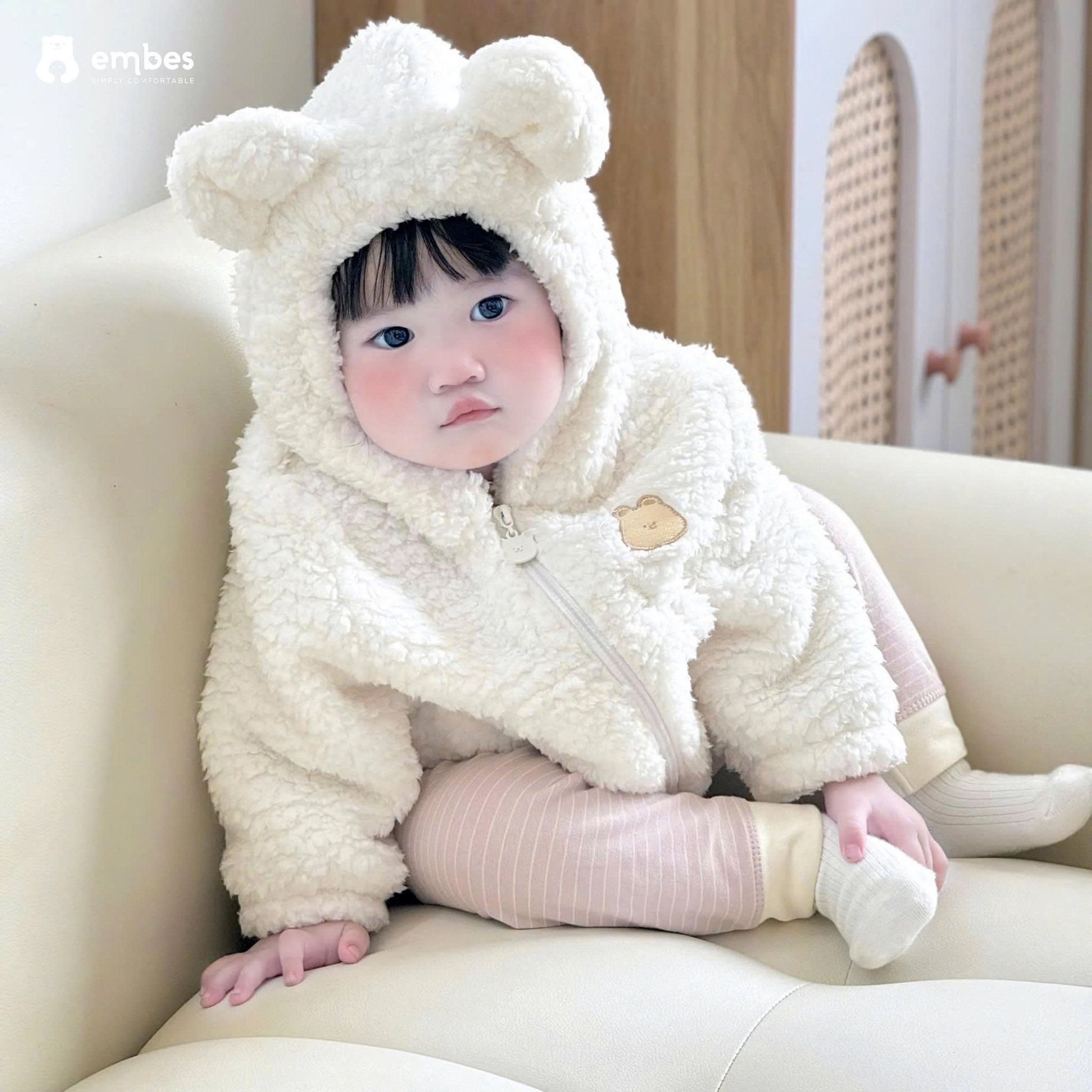 ❄️ Gió lạnh khẽ ùa về, nhưng hơi ấm vẫn giữ lại nơi đây, trong chiếc áo khoác lông tai gấu mềm như mây, ôm trọn bé con vào lòng. Embes tin rằng, mỗi chiếc áo đều là một cái ôm nhỏ, gửi gắm yêu thương dịu dàng nhất đến thiên thần bé bỏng.