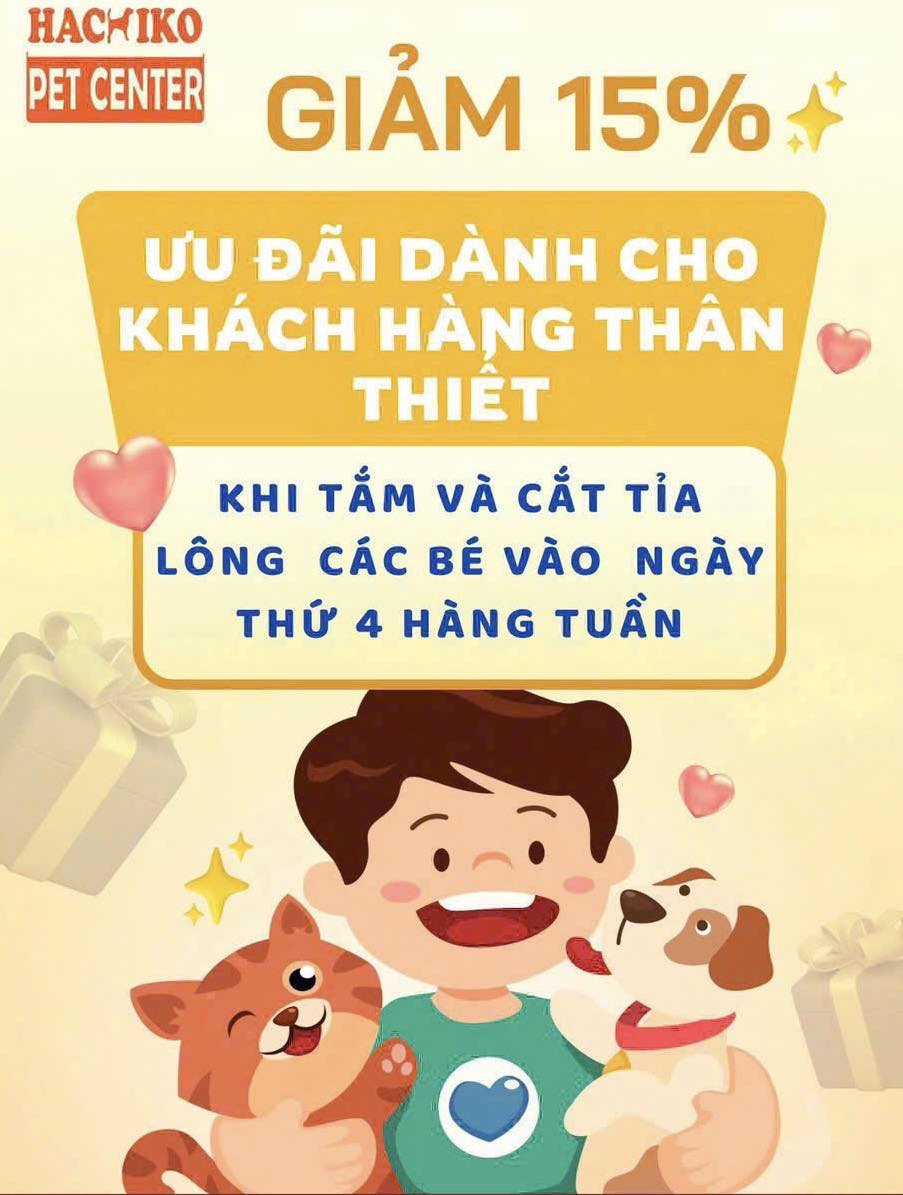 ![[🆕🇻🇳] Hachiko Pet Center – Quận 7 🐶🦜 Top1Pets 🐱🐠 ƯU ĐÃI RỰC RỠ – CHỈ RIÊNG THỨ 4!Giảm 15% đặc biệt cho dịch vụ tắm và cắt tỉa, cạo lông trong ngày thứ 4 hàng tuần!