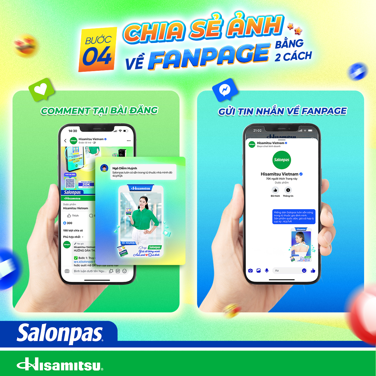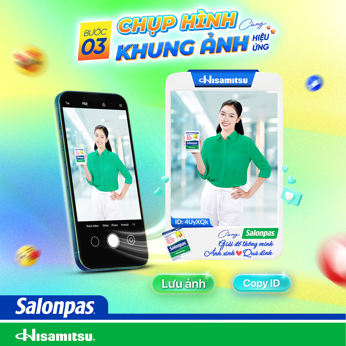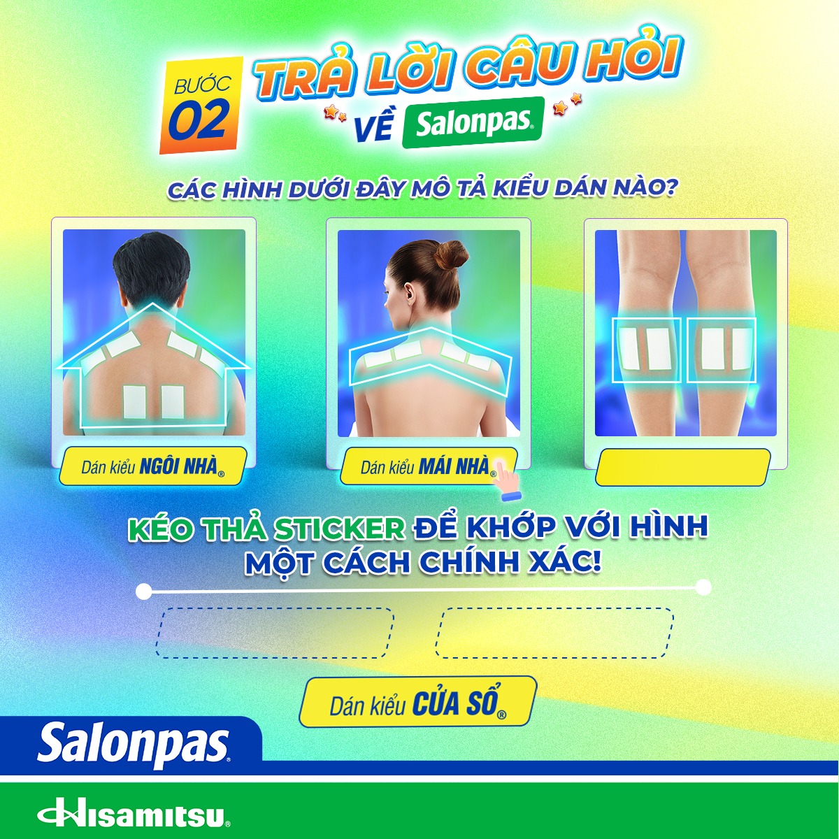 👉 Lưu ý: Khi tham gia hình chụp thực tế cần thấy rõ mặt người chơi đang cầm sản phẩm Salonpas hoặc thấy rõ người chơi đang dán đúng một trong ba kiểu dán Salonpas sáng tạo