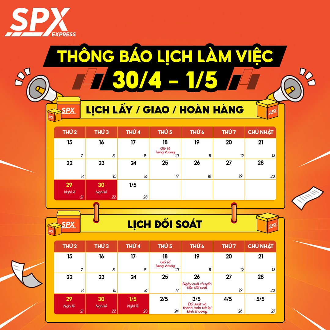 📢SPX THÔNG BÁO LỊCH LÀM VIỆC 30/4 – 1/5