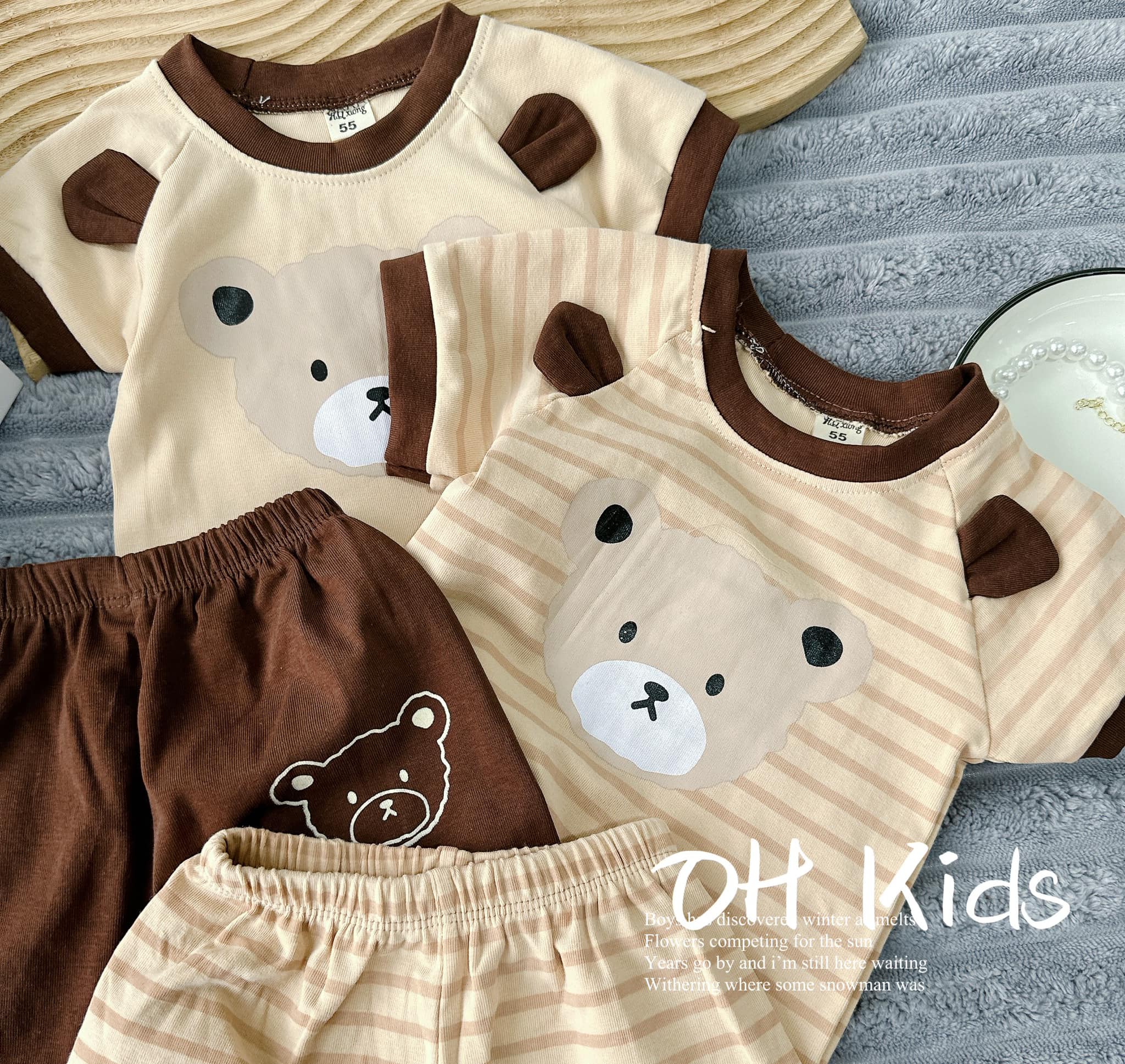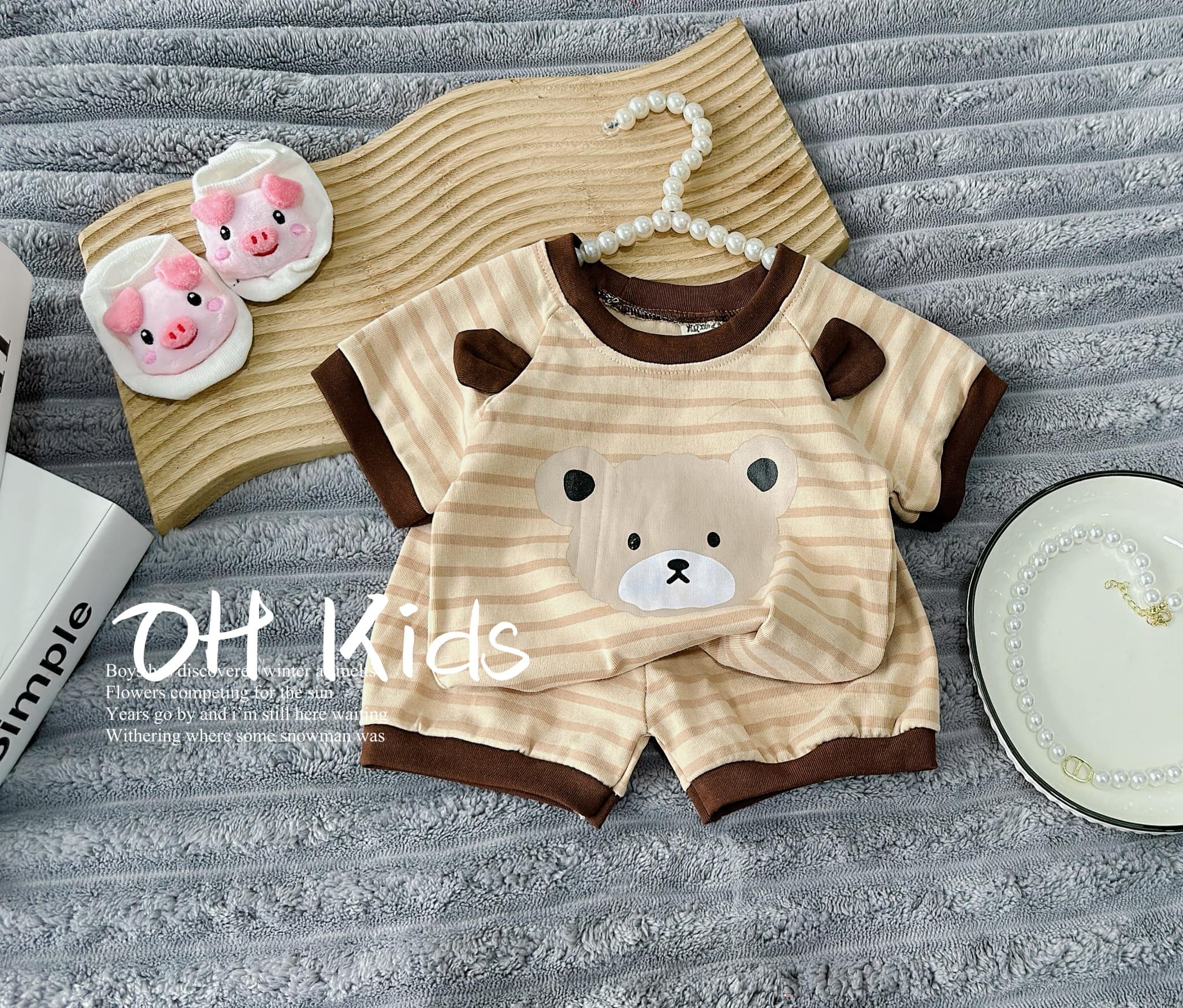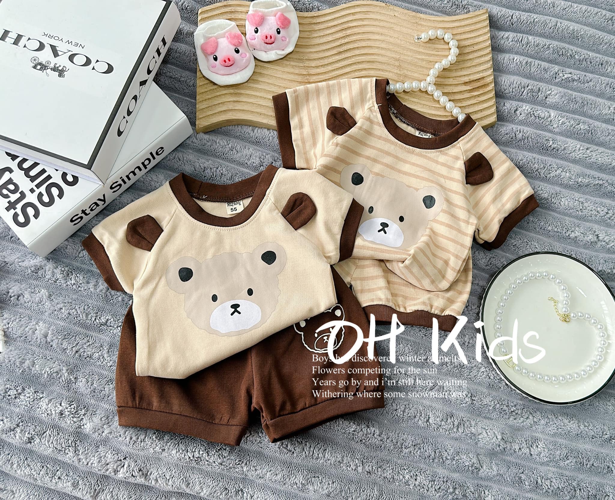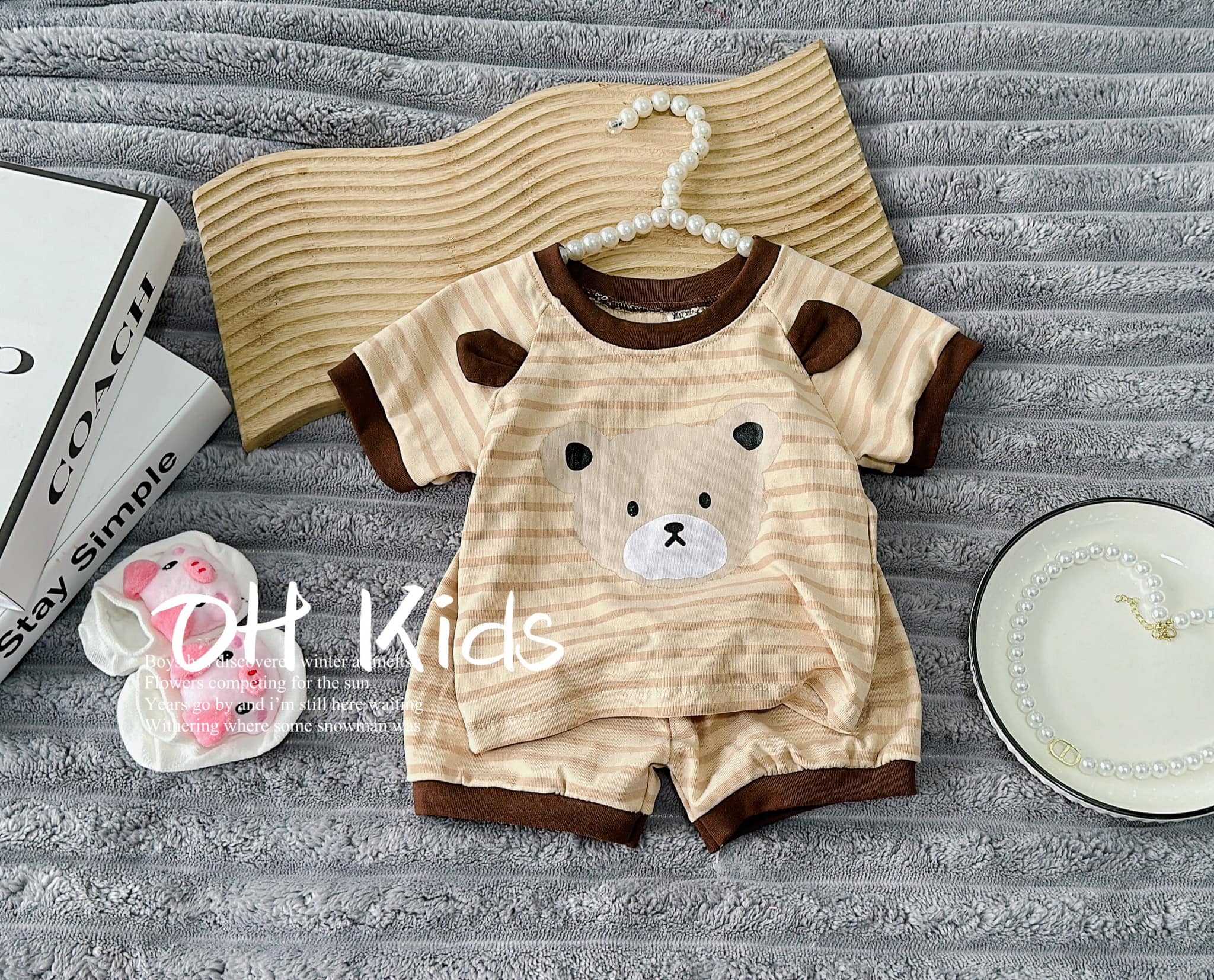 Chào buôn bộ Gấu phối kẻ cho bé trai – bé gái