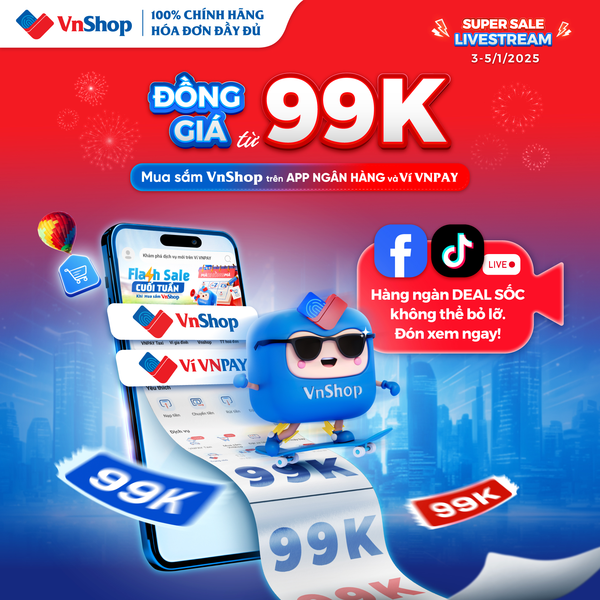 VNPAY SUPER SALE: VNSHOP KẾT CHUỖI LIVESTREAM BẰNG DEAL CỰC ĐỈNH
