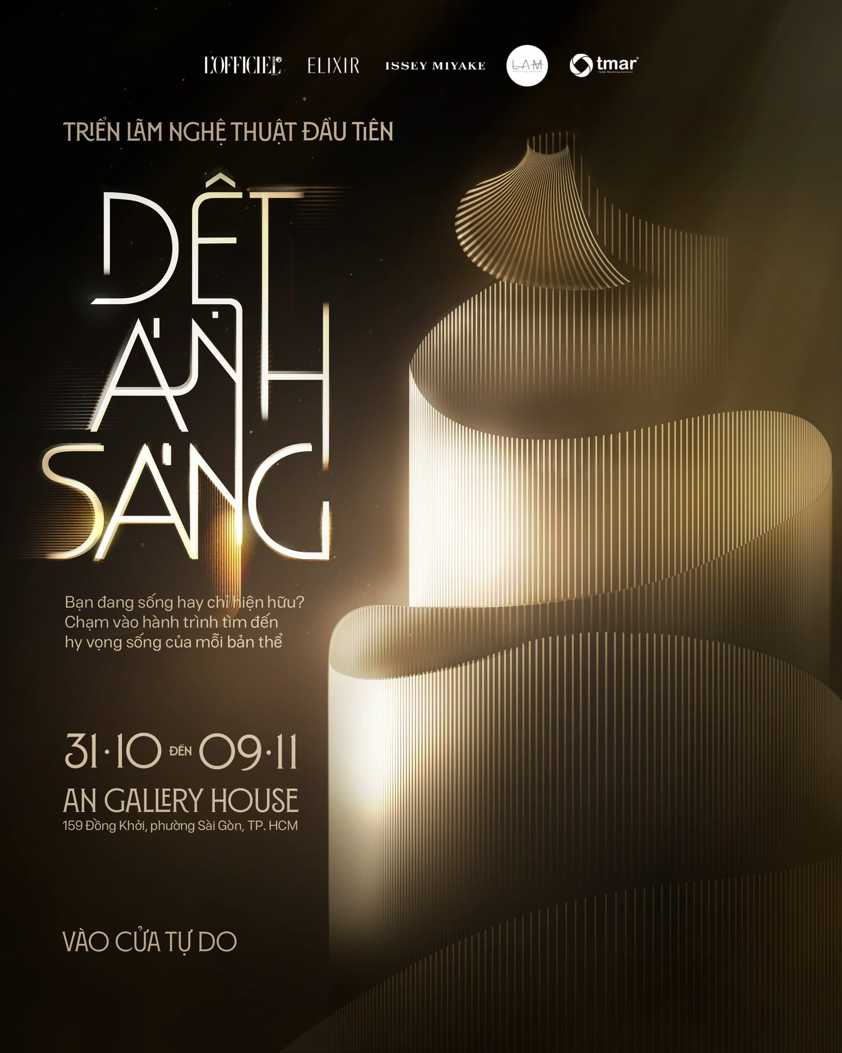 TRIu1ec2N Lu00c3M Du1ec6T u00c1NH Su00c1NG | Tu00ccM Lu1ea0I CHu00cdNH Mu00ccNH GIu1eeeA NHu1eeeNG MIu1ec0N u00c1NH Su00c1NGnnBu1eaft nguu1ed3n tu1eeb triu1ebft lu00fd vu00e0 tinh thu1ea7n su00e1ng tu1ea1o cu1ee7a ELIXIR vu00e0 ISSEY MIYAKE, nghu1ec7 nhu00e2n du1ec7t khu00f4ng gian LAM Weaving Spaces u0111u00e3 khu00e9o lu00e9o tu1ea1o nu00ean su1ee3i du00e2y ku1ebft nu1ed1i giu1eefa ngu01b0u1eddi thu01b0u1edfng lu00e3m vu1edbi cu1ea3 khu00f4ng gian Du1ec7t u00c1nh Su00e1ng. nnKhi u0111u00f3, gian phu00f2ng khu00f4ng cu00f2n lu00e0 nhu1eefng khu1ed1i hu1ed9p vuu00f4ng vu1ee9c, mu00e0 tru1edf nu00ean su1ed1ng u0111u1ed9ng qua su1ef1 bu1ec1n bu1ec9 cu1ee7a giu1ea5y du00f3, nu00e9t cu1ee9ng cu1ecfi cu1ee7a lu00e1 nhu00f4m, vu1ebb bu1ed3ng bu1ec1nh cu1ee7a bu00f3ng khu00ed, hay u0111u1ed9 mu1ec1m mu1ea1i cu1ee7a vu1ea3i cu0103ng. Mu1ed7i chu1ea5t liu1ec7u, nhu01b0 mu1ed9t su1ee3i chu1ec9 cu1ea3m xu00fac, u0111an cu00e0i vu00e0o nhau vu00e0 biu1ebfn chuyu1ec3n u0111u1ea7y nghu1ec7 thuu1eadt tru00ean mu1ed9t su1ee3i du00e2y ku1ebft nu1ed1i xuyu00ean suu1ed1t, ku1ec3 lu1ea1i hu00e0nh tru00ecnh vu1ec1 su1ef1 tu1ed5n thu01b0u01a1ng, nghi hou1eb7c, hy vu1ecdng, vu00e0 tu00e1i sinh.nnBu01b0u1edbc qua 5 miu1ec1n cu1ea3m xu00fac, tu1eeb Tu0129nh Tu1ea1i, Soi Chiu1ebfu, Hy Vu1ecdng, Hu00f2a Hu1ee3p, u0111u1ebfn Thu0103ng Hoa, ngu01b0u1eddi thu01b0u1edfng lu00e3m nhu01b0 u0111u01b0u1ee3c soi ru1ecdi chu00ednh mu00ecnh, lu1eafng nghe nu1ed9i tu00e2m, u0111u1ec3 ru1ed3i tu00ecm lu1ea1i u0111u01b0u1ee3c cho mu00ecnh hu00e0nh tru00ecnh su1ed1ng u00fd nghu0129a.nnDu1ec7t u00c1nh Su00e1ng khu00f4ng chu1ec9 lu00e0 mu1ed9t triu1ec3n lu00e3m nghu1ec7 thuu1eadt, mu00e0 lu00e0 mu1ed9t hu00e0nh tru00ecnh u0111u1ec3 cu1ea3m, u0111u1ec3 chu1ea1m, vu00e0 u0111u1ec3 nuu00f4i du01b0u1ee1ng niu1ec1m tin vu00e0o su1ef1 tu00e1i sinh cu1ee7a u00e1nh su00e1ng trong tu00e2m hu1ed3n mu1ed7i ngu01b0u1eddi. nn#DetAnhSang #Elixir #IsseyMiyake #LOFFICIEL #LOFFICIELVietnam #LAMWeavingSpacesnu2014u2014u2014u2014u2014u2014u2014u2014u2014u2014u2014u2014u2014u2014u2014nThu00f4ng tin vu1ec1 triu1ec3n lu00e3m u201cDu1ec7t u00c1nh Su00e1ngu201d by ELIXIR x Issey Miyakenud83duddd3ufe0f Thu1eddi gian: 9AM-9PM | 31.10.2025 – 09.11.2025nud83dudccd u0110u1ecba u0111iu1ec3m: An Fine Art Gallery, 159 u0110u1ed3ng Khu1edfi, Phu01b0u1eddng Su00e0i Gu00f2n, TP.HCMnud83cudf9fufe0f Vu00e0o cu1eeda tu1ef1 do”},”id”:”UzpfSTEwMDA3NjMwODU2NTM1MjpWSzoxNTE0NzkyNDYyODcyMzQ4″},”accent_color”:”FF1D1711″},”extensions”:{“prefetch_uris_v2”:[{“uri”:”https://scontent.fhan14-1.fna.fbcdn.net/v/t39.30808-1/453218917_517962800757334_4810990405617160562_n.jpg?stp=cp0_dst-jpg_s80x80_tt6&_nc_cat=1&ccb=1-7&_nc_sid=2d3e12&_nc_ohc=IU3TAi4jS80Q7kNvwEjLwTd&_nc_oc=AdmQuHTmzima-CjLPwbUIJvwSjgwIxDBymXytaB6DGQNlr9IgYR_O9Uet0HXVS-CtUejeR6dl7n1fNmBcMJLAemu&_nc_zt=24&_nc_ht=scontent.fhan14-1.fna&_nc_gid=hYIRgb_YPVSsVLsmAklXgA&oh=00_AfdeQqVgbZePi3l4yTMrITu071z-iYLPRMfPCnf1m31Ufg&oe=68FBA873