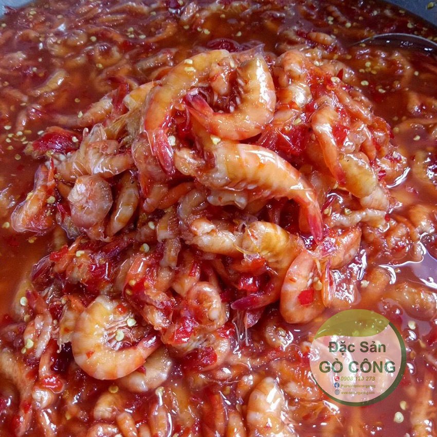 Mắm tôm chua Gò Công (không có đu đủ) – Món mắm này hấp dẫn bởi màu đỏ tươi bắt mắt của tôm và ớt, cùng với vị chua, ngọt, mặn, cay hài hòa.