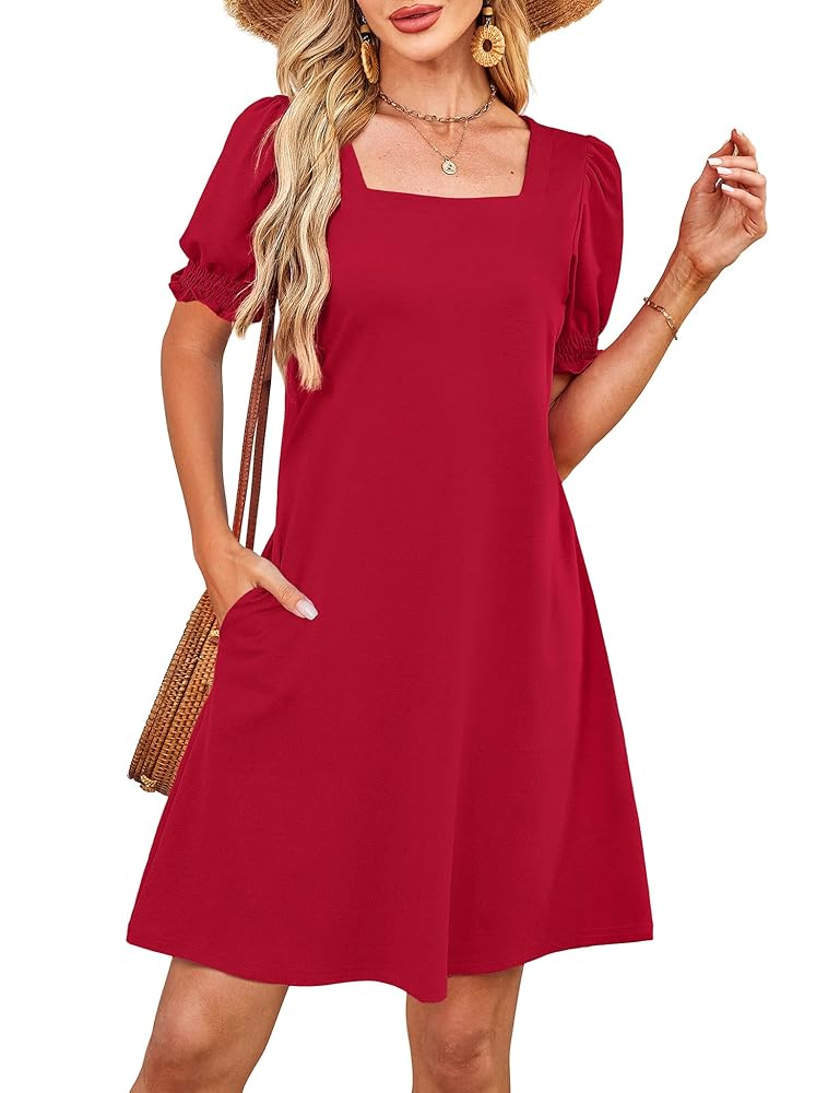 [🛒📦]Summer Dresses for Women 2025 Casual Cute Square Neck Puff Short Sleeve Dress with Pockets – RUMIA , SKU – B0DZBRVQX2 – amazon.com 📦🛒Top1Shop🛒