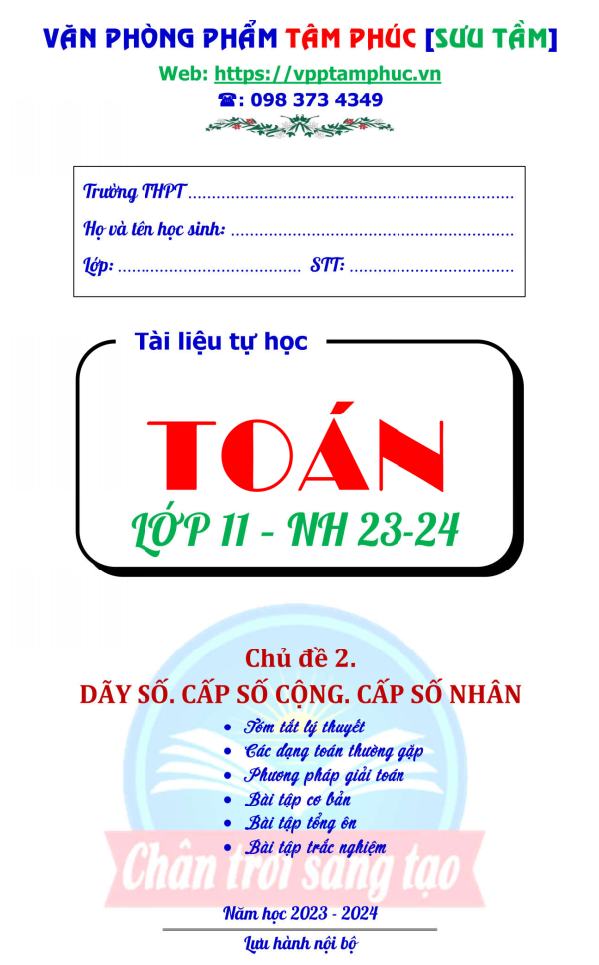 VỞ BÀI TẬP TOÁN 11 CHƯƠNG 2 DÃY SỐ - CẤP SỐ CỘNG - CẤP SỐ ...