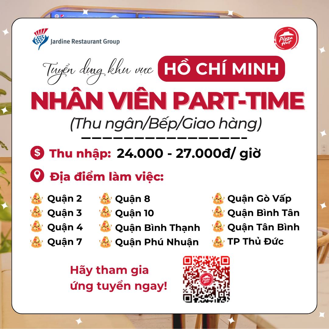 🔥🔥 HOT HOT: Pizza Hut Hồ Chí Minh tuyển dụng NHÂN VIÊN PART TIME_KHÔNG YÊU CẦU KINH NGHIỆM nè các bạn ...