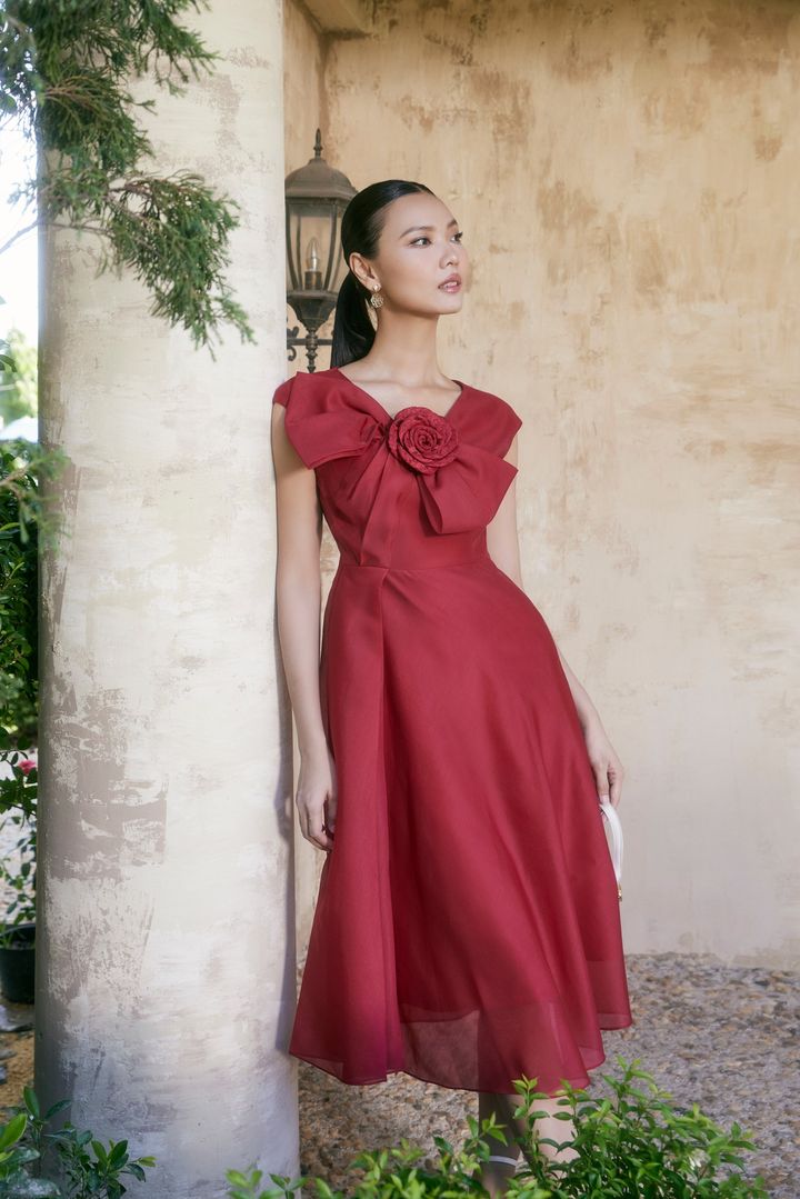 𝐃𝐚𝐫𝐤 𝐑𝐞𝐝 𝐁𝐨𝐰𝐭𝐢𝐞 𝐌𝐢𝐝𝐢 𝐃𝐫𝐞𝐬𝐬 𝐖𝐢𝐭𝐡 𝐅𝐥𝐨𝐰𝐞𝐫
