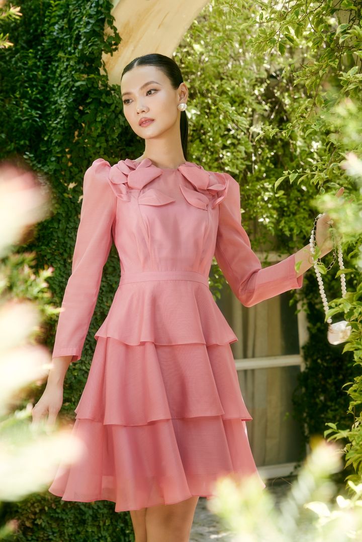 Mẫu đầm liền thân chất liệu organza với tông màu nâu nhạt thiên hồng sẽ là ...