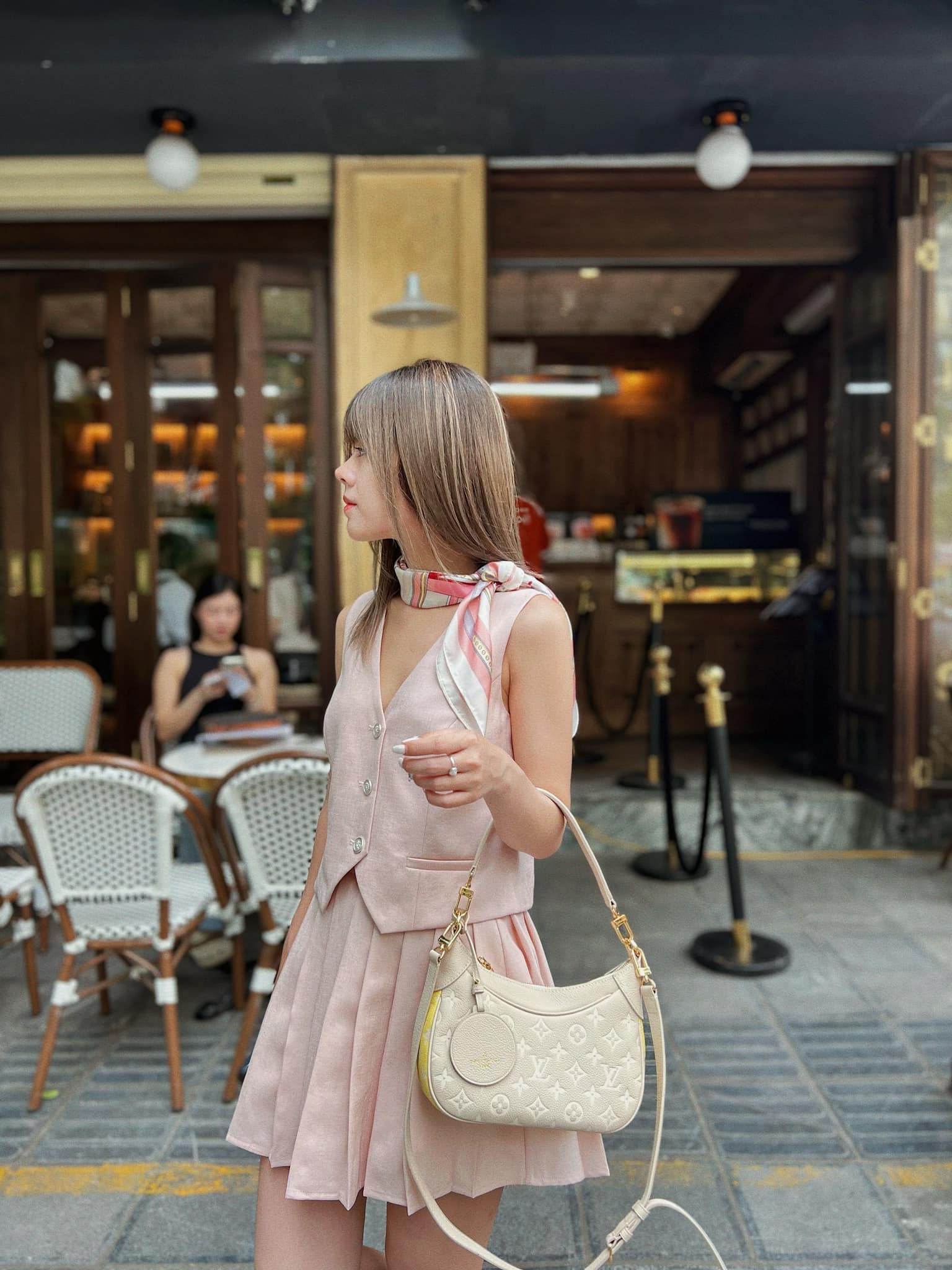 Trò chuyện với chú chó trắng 😜 Thật sự set đồ này ở ngoài ta nói xinh hơn ảnh các chị ah Màu kem chất ...