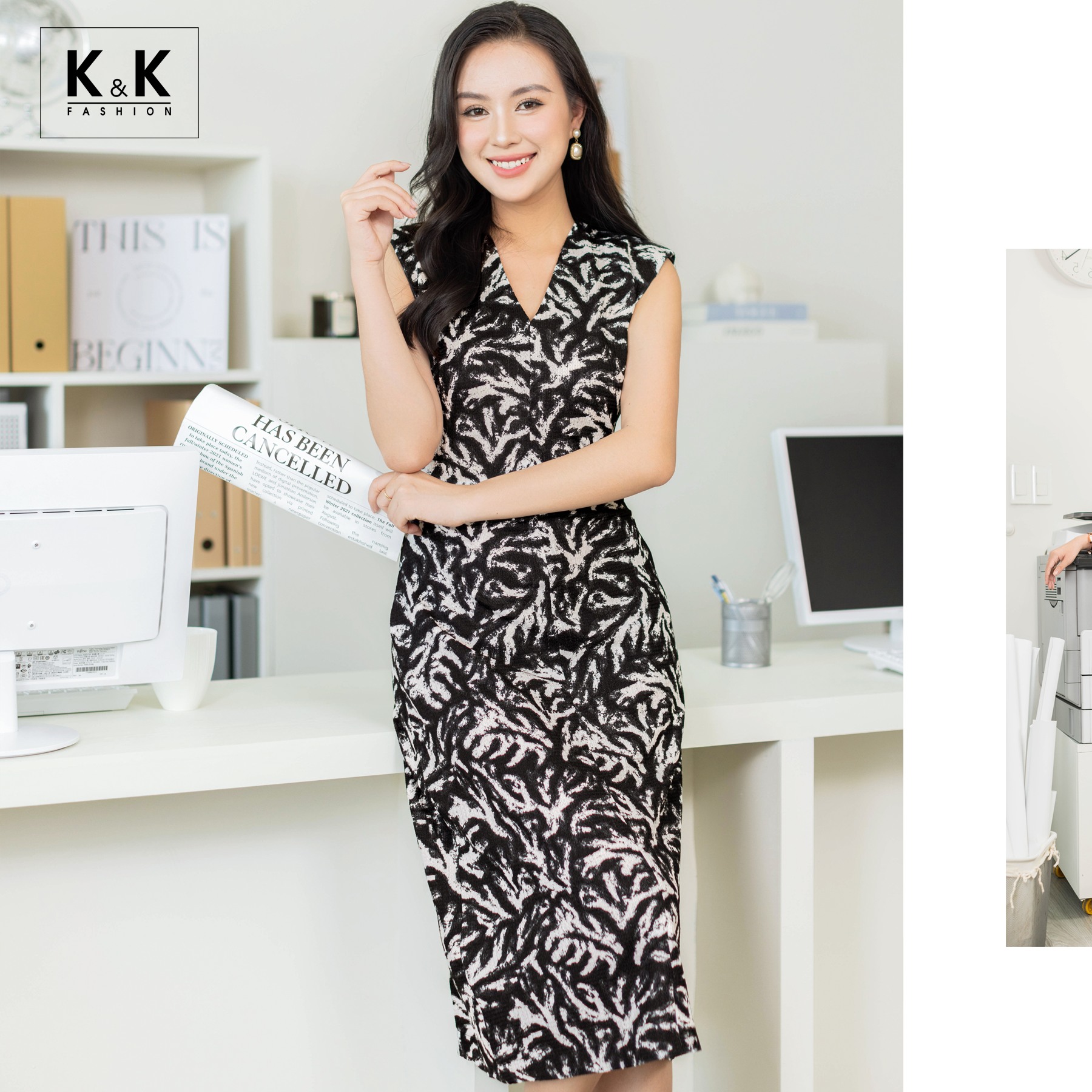 KK169-24 - Một mẫu đầm hoa hội tụ đầy đủ nét đẹp thanh lịch, nền nã cần có cho các chị em công sở. ...