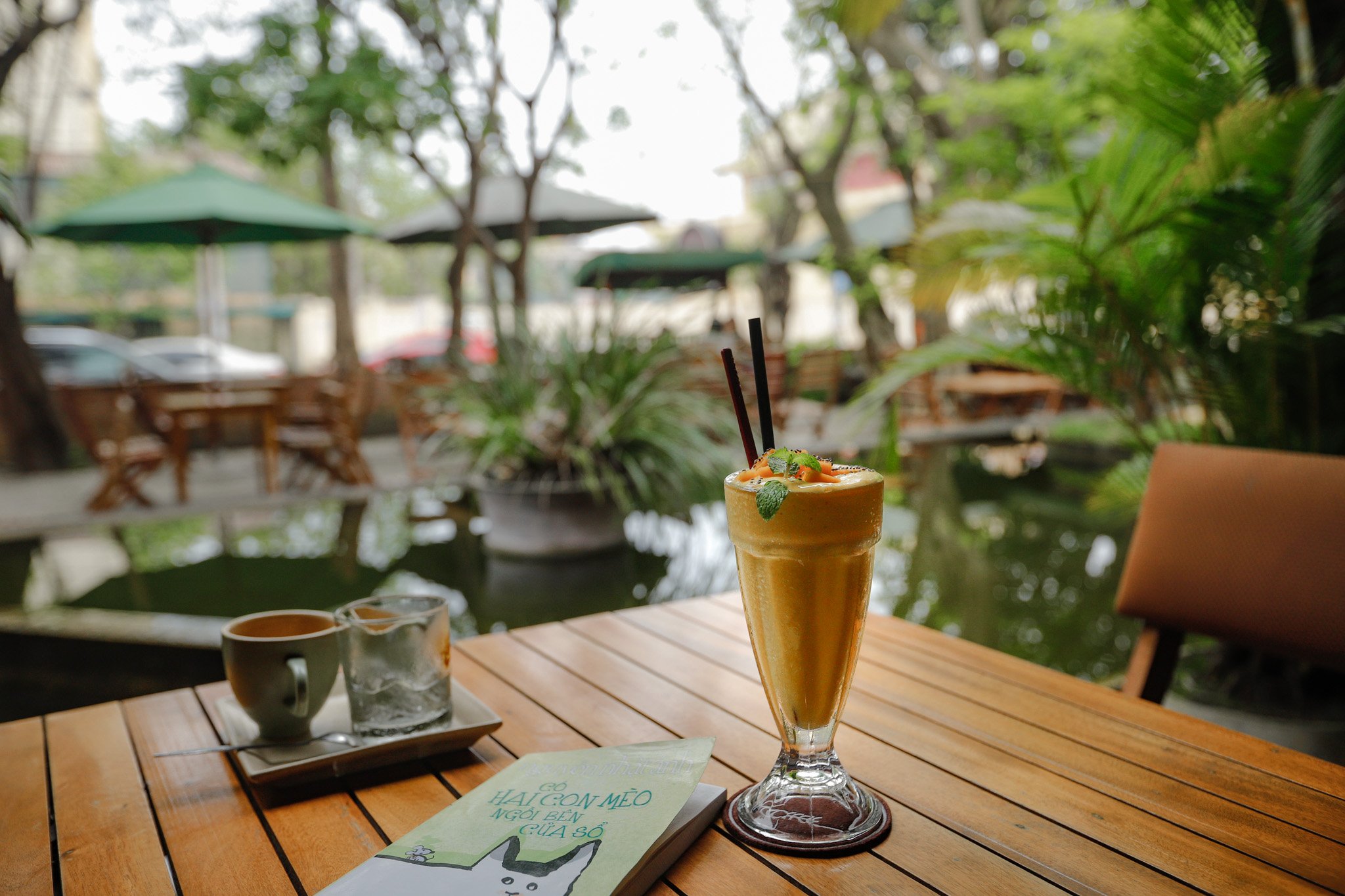 Một cốc sinh tố xoài, thơm, béo, sánh mịn, ...