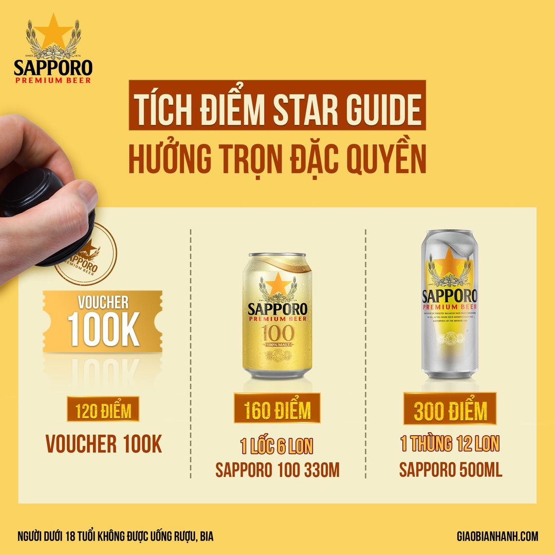 MUA BIA SAPPORO PREMIUM 100 & ĐẬU PHỘNG OISHI MỰC CAY NHẬN NGAY ƯU ĐÃI!